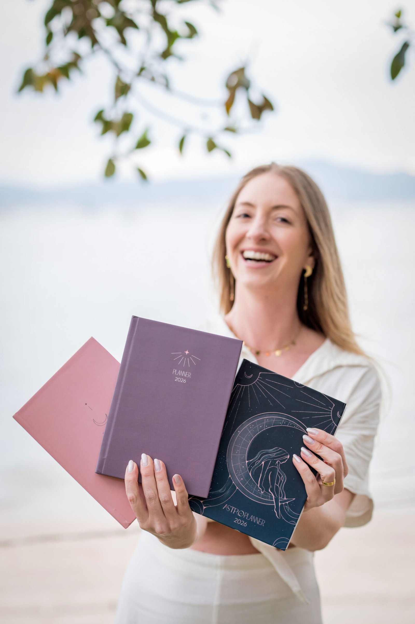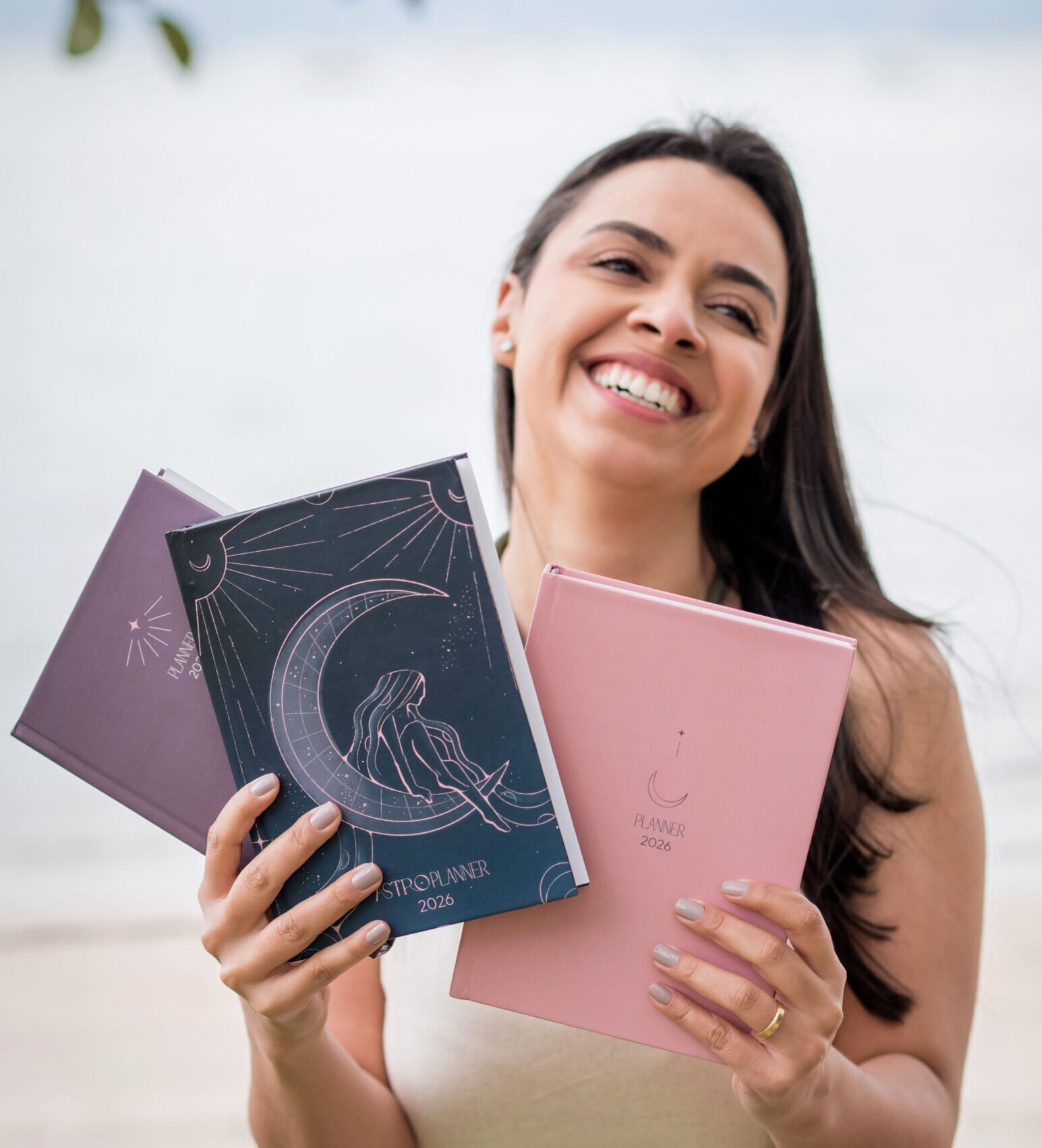 Desde então, não parei mais. A astrologia me inspira, me completa, me move a estudar e orientar tantas deusas que cruzam meu caminho. Como uma boa pisciana de lua em touro amo análises preditivas, organização, criações… não à toa, minha primeira formação foi em artes cênicas. Em 2021 lancei meu primeiro planner astrológico, com edições até 2024.