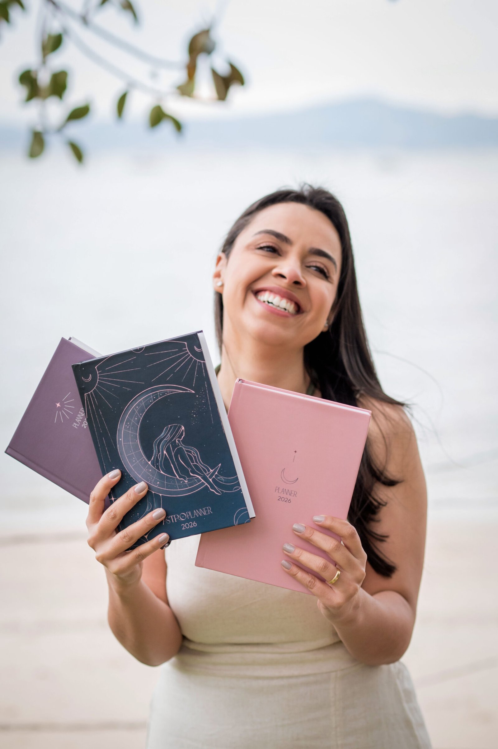 Em 2025, nasceu minha filha Jade, meu maior presente. Fiz uma pausa para viver essa fase ao lado do meu marido, Junio. Não lancei planner, mas minhas deusas sentiram falta. E quando me pediram indicação, lembrei na hora do Astro Planner, da Tabatta. Hoje, em 2026, nos unimos para criar um planner profundamente astrológico e mágico. Feliz e grata por fazer parte desse projeto.